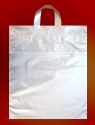 Igelitové tašky o rozměru 400 x 460 mm, bílé Navařené páskové držadlo a složené dno.